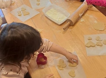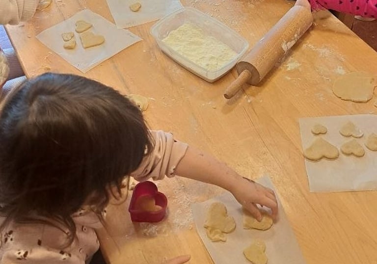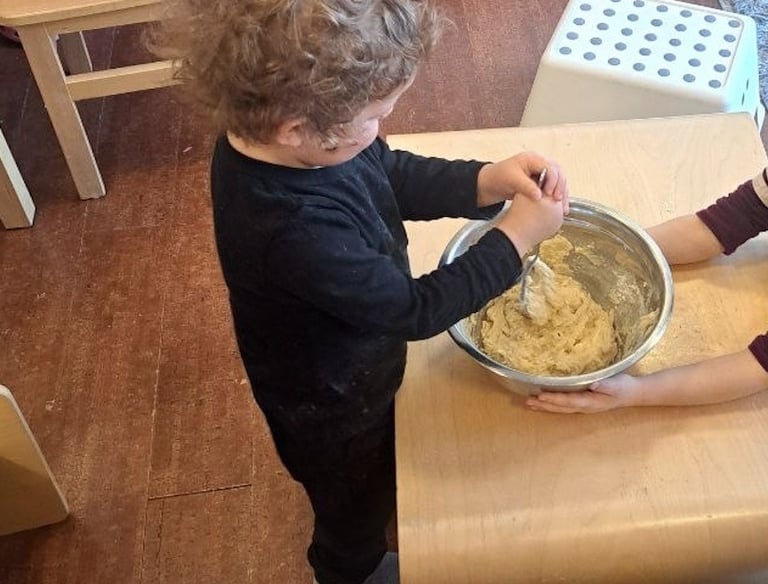 We offer nutritious snacks each day, with opportunities for children to occasionally participate in simple baking and food preparation.